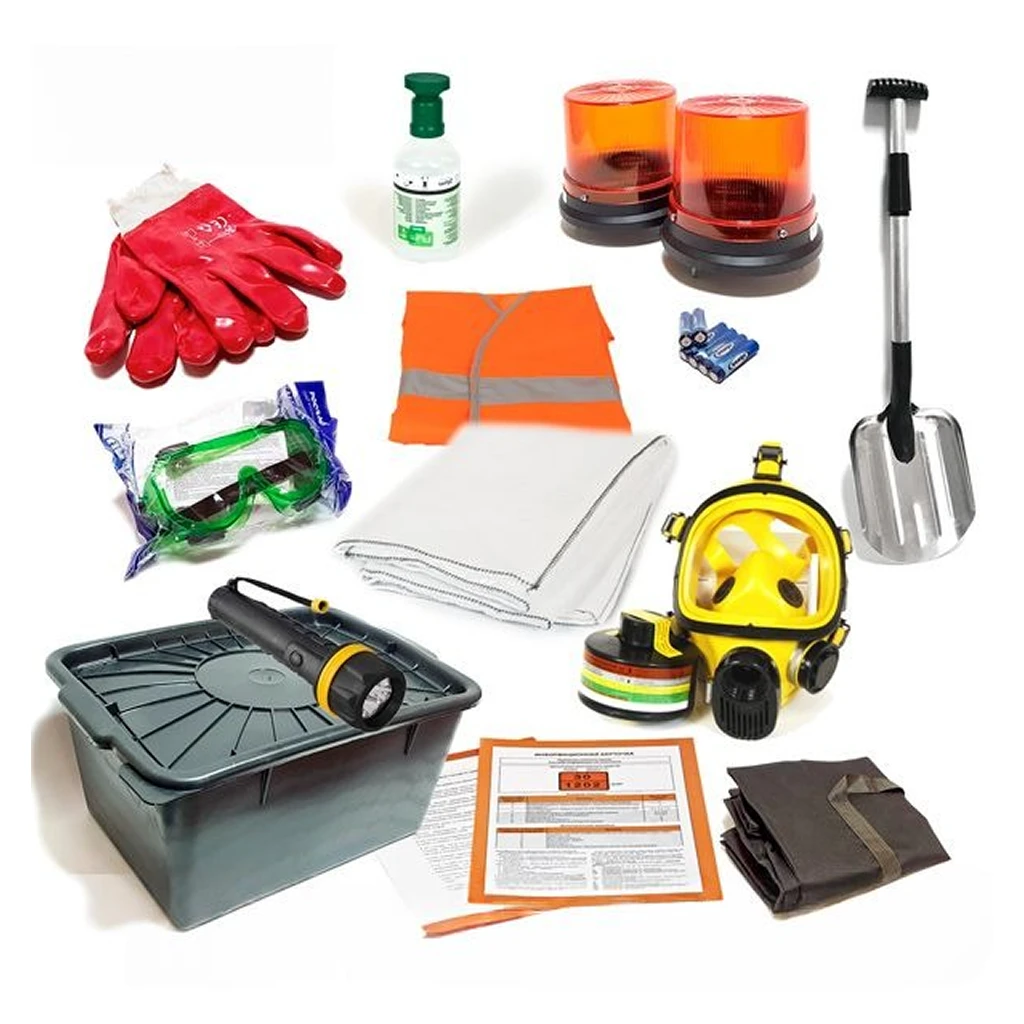 Комплект ADR для 1-9 класса опасности: сумка, очки, жилет, фонари, дренажная ловушка, маска с фильтром. Соответствует ДОПОГ и ТР ТС 018/201.